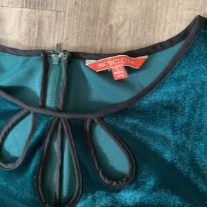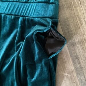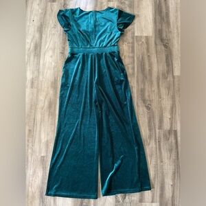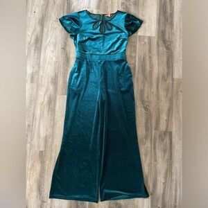 MODCLOTH Jumpsuit Velvet Short Sleeve Wide Leg Pockets Teal Size Large