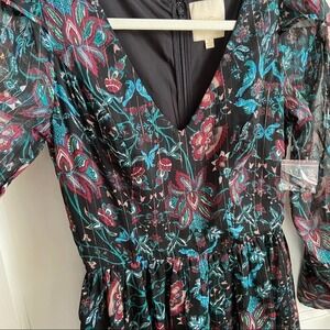 Inspired by the originality of a thumbprint with its metallic gold-striped fabric, open tulip sleeves, and pockets, this floral gown is a fashionable representation of your unparalleled self.