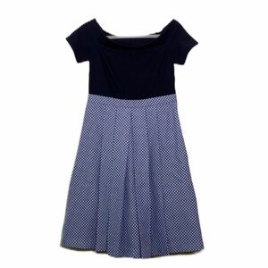 MODCLOTH Off The Shoulder Embroidered 50's Inspired Dress Blue Polka Dot Sz M