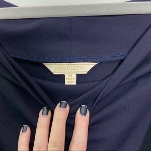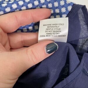 Super cute navy and white off the shoulder dress! This dress has a hidden zipper on the side and has a tulle underlay to create a beautiful and fun flair. It has a polka dot pattern on the skirt. Super soft material and comfortable!