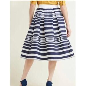 MODCLOTH Soiree Navy Stripe Full A-line Midi Skirt Retro