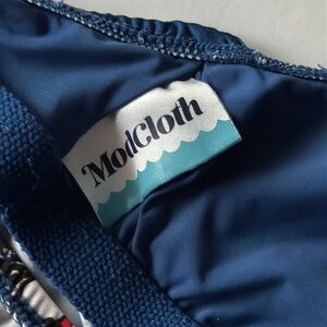 MODCLOTH the Reese one-piece swimsuit in a blue and multicolored floral print. Swimsuit has no size tag but seems to be an XS. Please see flat lay measurements to ensure fit. Pre-loved great condition. This one-piece swimsuit embodies sweetness and femininity. With ruffles cascading from the halter straps through the surplice neckline, a waist-cinching tie, this blue and floral print suit makes waves anywhere it’s worn.