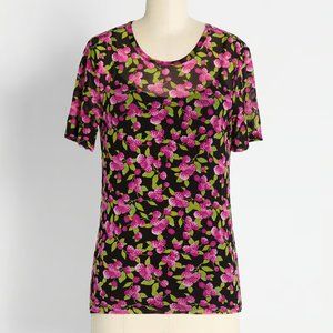 Add some fun layers to your top collection with this sheer black mesh tee from our ModCloth namesake label. Made from a soft, lightweight, and stretchy mesh knit that is covered all over in an exclusive print of magenta raspberries clustered together amongst green leaves and vines, giving this sheer top a little more coverage. A fun and daring separate, you will enjoy all the fun style possibilities this top brings!