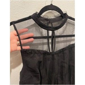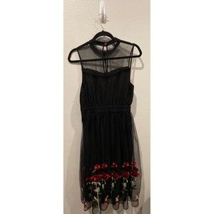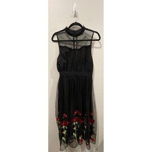 MODCLOTH Tulle Embroidered Sleeveless Rose Black Midi Dress. Size M