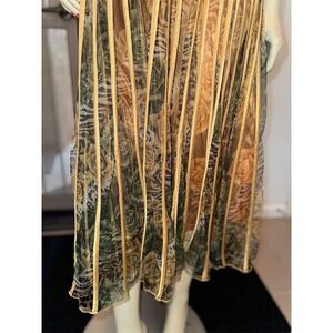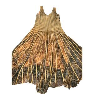 MODELLA Pleated Sleeveless Gold/ Multi-Color Print Overlay Midi Dress Size L