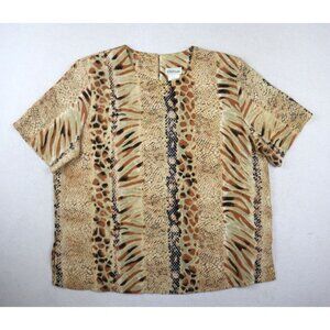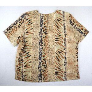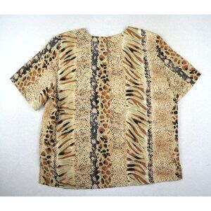 MODERN ESSENTIALS - WOMEN'S BEIGE MIXED ANIMAL PRINT SHORT SLEEVE BLOUSE - L