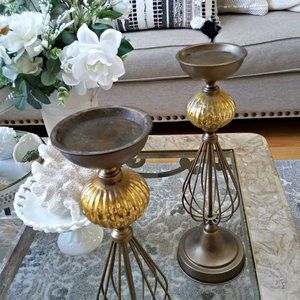 This is a gorgeous pair of SOLID WEIGHTY candle holders that would make the perfect addition to any decor. Beautifully done and would be great with a pillar, votive or small pumpkins during the fall. Each measures 16" tall x 5" x 5". Excellent pre loved condition. PRICE REFLECTS PACKING MATERIALS, AND POSH'S 20% FEE. WEIGHTY CANNOT BE BUNDLED. Smoke free ty for poking in my closet xx