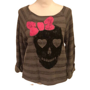 MODERN LUX Grey Skull w/ Rhinestones Top Size M