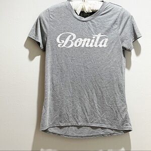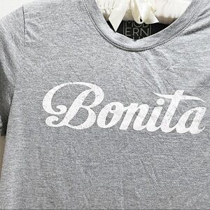 MODERN LUX Womens Heathered Gray Graphic Tee “BONITA” Short Sleeve Size Medium. Good pre-owned condition. Gentle signs of wear. No stains or holes. All measurements are approximate.