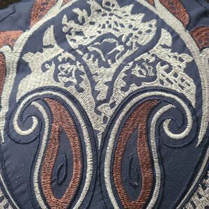 Beautiful accent pillows are embroidered each with a large Jacobean flower in bronze and cream satin thread on a rich background of navy cotton. These colorful 18" square beauties are in excellent condition and will bring a touch of contemporary class to any room. Perfect for your fall winter summer or spring decor!