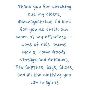 Do you know how to bundle? I offer 15% off every item if you buy two or more items from my closet! You also only need to pay shipping ONCE on a bundle -- up to 5 lbs per order. It’s a win-win! To bundle, tap on the shopping bag icon under each item you’d like. Posh will combine all those items into a single bundle, automatically deduct the 15% discount, and combine the shipping. If you send me a bundle, I will offer an even higher discount to you!