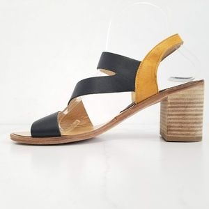 MODERN VINTAGE Open Toe Sandals Black Tan Heels 6