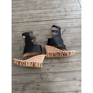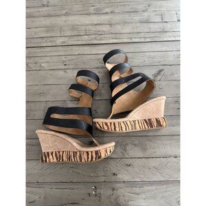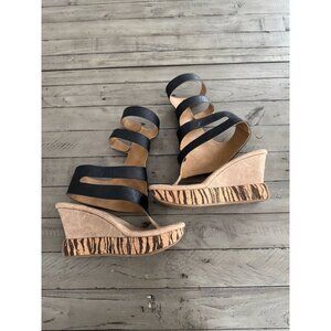 Modzori Corona 2-in-1 High Wedge Reversible Gladiator Sandals Black Beige Leather Size 7