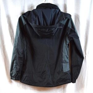 MOERDENG black & gray lined hoodred rain coat / jacket, size small