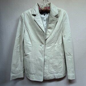 MOGU WoMen's Blazer Jacket Single Breasted Leather Sport Coat Cream Size XS