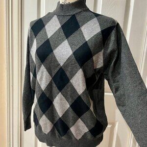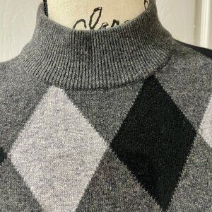 MOHAIR 100%CASHMERE ARGYLE SWEATER MOCK NECK GAO YUN XIANG SZ M GRANDPA SWEATER