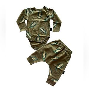 MOI NOI Corn Bodysuit Outfit, Onesie, Harem Pants, Khaki Green, 18-24