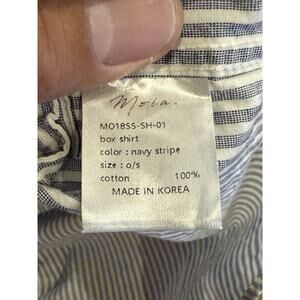MOIA Womens Navy Stripe Box Shirt Button Up Long Sleeve One Size Shirt NWT $168