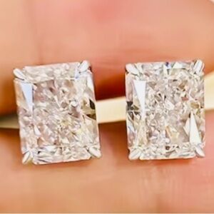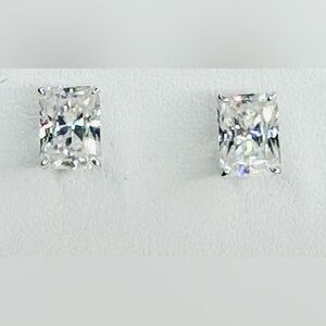 These elegant emerald cut Moissanite earrings add a touch of sophistication to any outfit. Perfect for any occasion.