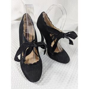 MOJO MOXY! BLACK GENUINE SUEDE LEATHER VELVET BOW TIE MARY JANE HEELS! SZ 7M