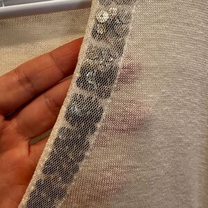 Very stylish and flow-y. Perfect for any occasion. I mainly wore it to work with a cardigan over it (and with leggings!) There's sequins woven in around the collar underneath a "Cage" of stitching. Perfect for some added definition.