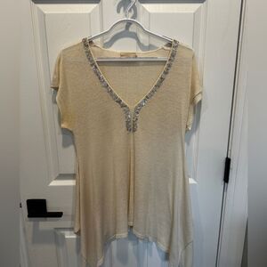 M.O.L Knits Cream with sequins V-Neck Women’s Tunic Top