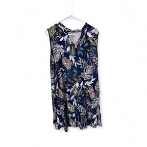 MOLERANI Navy Tropical Leaf Print Sleeveless Swing Dress NWT – Size 2XL