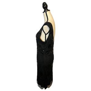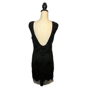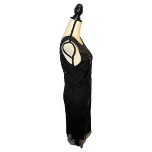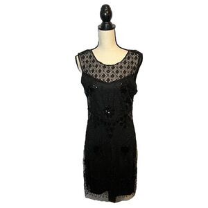 MOLLY BRACKEN Black Sequined Sleeveless Dress Geometric Pattern Sheer Top Large