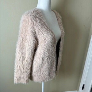 MOLLY BRACKEN Faux Fur Eyelash Cropped Open Front Blush Pink Cardigan Size Small