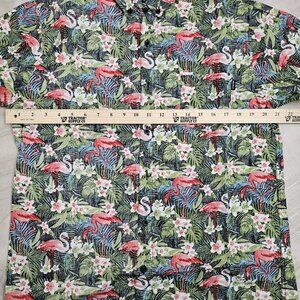 MOLOKAI Surf Hawaiian Shirt Men's Tropical Flamingo Print Button-Down Cotton L