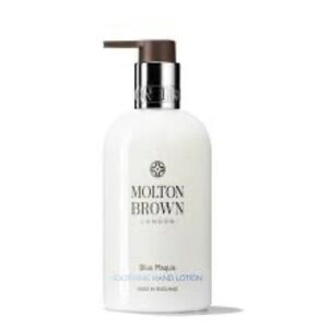 Molten Brown, a luxury brand founded in London in 1971, makes this Soothing Hand Lotion in "Blue Maquis", 10 fluid ounces. Fresh, herby aroma of rosemary and oakmoss and a brisk Corsican pine scent that softens and conditions hands and nails. This is quick absorbing, leaving the skin feelings supple. It's comforting and lightweight and has notes of woody herbs, lavender and oak moss. This product is not tested on animals and is vegan, gluten-free and paraben free. It's a pump dispenser, and is not sealed, but has not been used. Great lotion, and it's NWT!