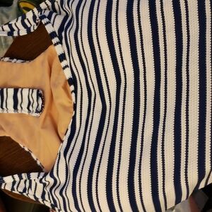 MOLYBELL Navy/White Swimsuit High Waisted Cut-our Zip-up Racerback Size Small
