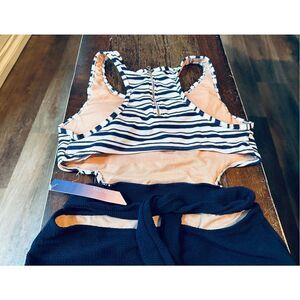 MOLYBELL One Piece Swimsuits for Women High Waisted Bathing Suit Stripes Cutout Racerback Zip Up