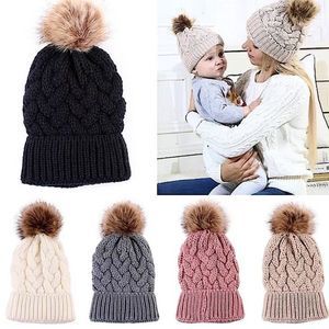 Mommy and Baby Knit Crochet Pom Pom Hat Sets