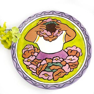 Vintage artistic ceramic plate from Block Bernada for Museum of Modern Art. Made in Portugal decorative plate features an artistic painted women with floral design & is beautiful as a decorative display in your interior or as a handsome display for your culinary offerings. Artistic design meets function. Purple and bright green plus pink, orange & yellow colors. Just gorgeous!