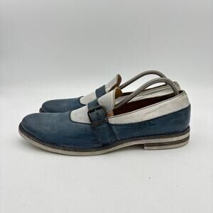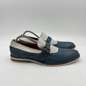 MOMA Italian Leather Strap Loafer Dress Shoes Two Tone Blue Men's 45 US 12