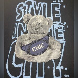 Cute , funny sweatshirt, heavy cotton fabric. Crew neck, embellishment that also has a bear with a backpack.