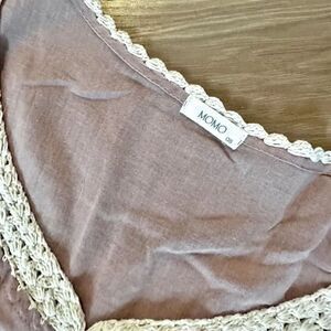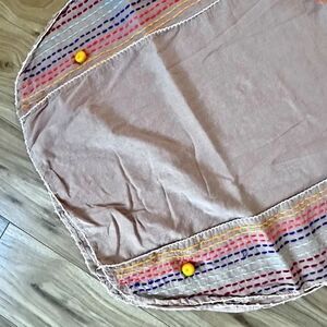 Absolutely stunning embroidered kaftan dress from MOMO! Size is marked "OS". Please see dimensions below for best fit. Worn once. Main color is a blush pink / nude color. Bright Pom Poms and embroidery details. Crochet detail at collar and edges, as well as down back.