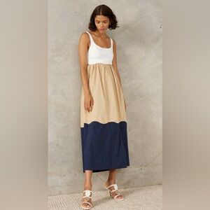 THE FORMATION SUNDRESS IS A WARDROBE STAPLE, FEATURING A FITTED BODICE AND FREE RUFFLED SKIRT. THIS STYLE IS ADORNED WITH SCALLOPED HEM DETAILING AND AN OPEN BACK BODICE CUT-OUT.
