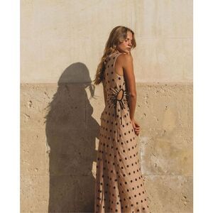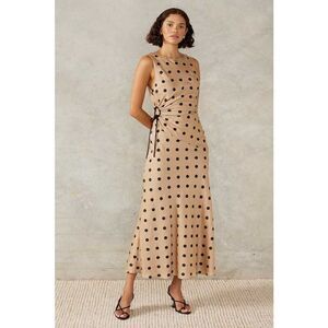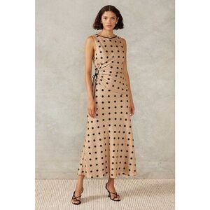 MON RENN LUCINDA MIDI DRESS IN MOCHA POLKA DOT size S NWT$199