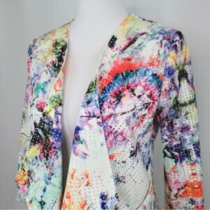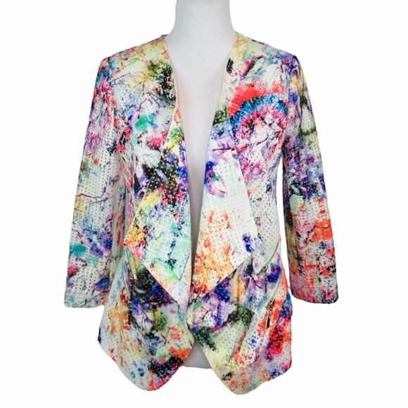 MONA LEAH COUTURE Perforated Watercolor Open Draped Front Jacket Size Small