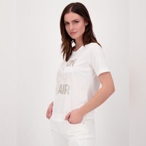 The regular fit with a round neckline, short sleeves and a rounded hem ensures a simple look. The high quality of cotton and modal guarantees skin-friendly properties. With a 3D lettering patch, glittering tone-on-tone script and metallic 3D lettering print on the front, it looks casual and upbeat.