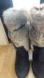 Beautiful winter boots, left boot was damaged, fur was ripped , it is fixed but still noticeable if you looking thought the fur, the other boot is in perfect condition . Therefore the price is so low, please look at thepictures