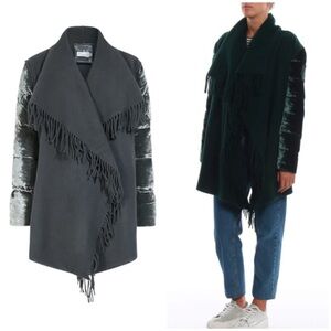 MONCLER Cape Poncho Fringe Velvet Sleeve Grey Jacket SZ L