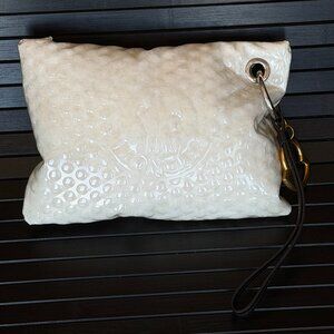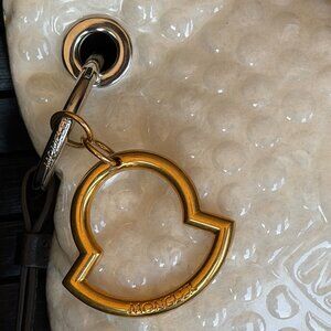 MONCLER Goose Down Padded Vanille Clutch Bag Chunky Logo Key Chain White NWOT