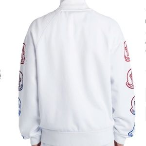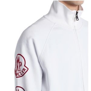 Flocked graphics in ombr? hues recreate the Moncler twin summits logo on this sporty track jacket cut from cotton French terry with a two-way zip closure.