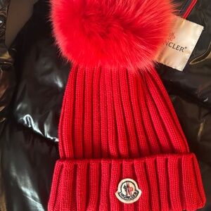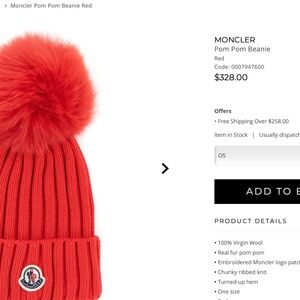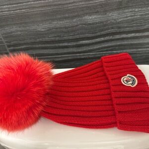 The Moncler Pom Pom Beanie is crafted from 100% virgin wool and is fully lined. It features a chunky ribbed knit, real fur pom pom, embroidered Moncler logo patch, turned-up hem and one size fits all design. This beanie hat is perfect for everyday wear and can be great accessory to make you look stylish.