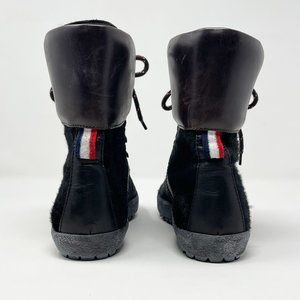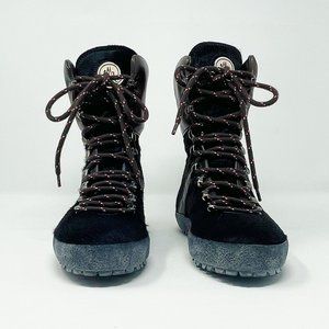 Boots were packed for a trip but actually NEVER WORN! Some very minor scratching on the top leather but otherwise brand new. They even have the sticker still on the bottom sole!!