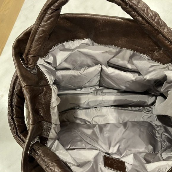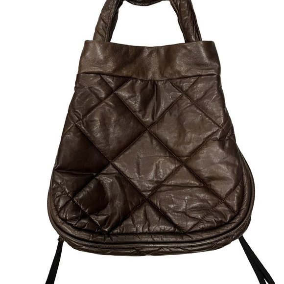 MONCLER Quilted Leather Sac/Bag Puffy Dark Brown. No Flaws! ER $ 1199