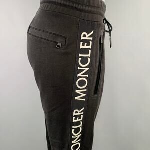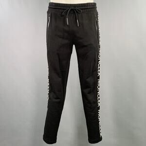 MONCLER Size L Black Logo Cotton Drawstring Casual Pants